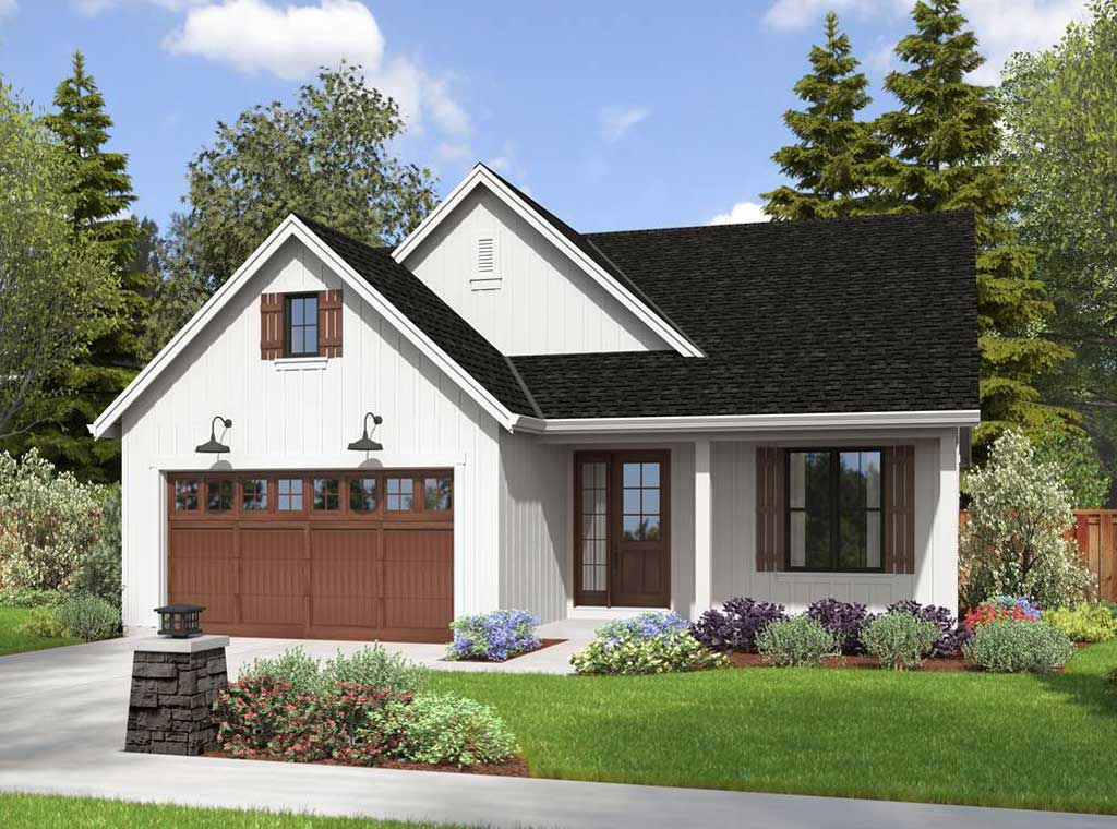 This 1 story, 3 bed and 2 bath classic farmhouse bungalow design.From the charming light fixtures over the two car wood garage door to the covered front porch with detailed design accents, your guests will already be at ease and ready to make memories.