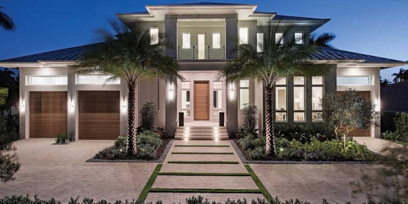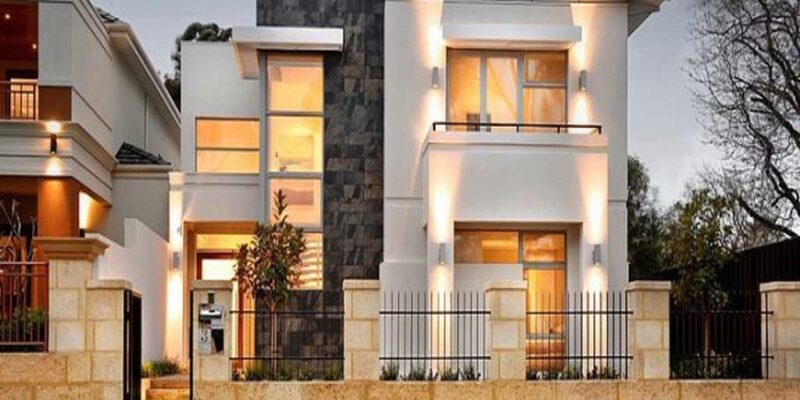 Modern House Design Modern design dream house with exposed brick stone pillars ,dark window frames around the large glass windows […]