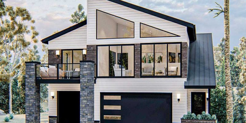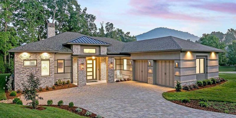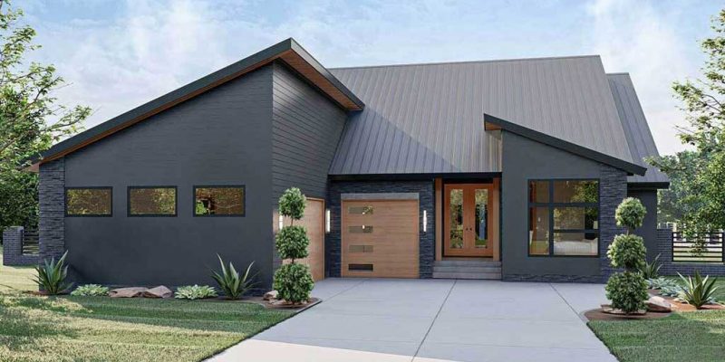 Modern Ranch Home Plan A dynamic angled roofline welcomes you to this modern ranch house plan. The exterior combines stucco, […]